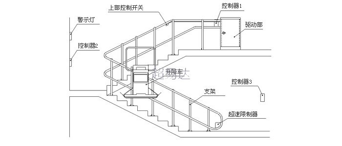 斜掛式輪椅升降平臺,一種安裝在樓道系統(tǒng)利用電機(jī)牽引沿著軌道上下移動并運載乘客的無障礙安全裝置。它由驅(qū)動系統(tǒng)、導(dǎo)軌、繩輪鏈、移動平臺等組成。用于建筑樓道系統(tǒng)中,乘坐輪椅或爬樓梯困難的人員攀爬樓梯的專用設(shè)備。主要由主驅(qū)動系統(tǒng),輔助驅(qū)動系統(tǒng)、主控系統(tǒng)和安全系統(tǒng)組成。